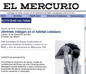 Más tarde surgió: por defecto danza, tomando esa opción automática que se genera cuando no decides nada, pues creo que es un término muy contemporáneo sacado de la informática y que instala la palabra defecto como algo que ésta a pesar nuestro. De esta forma insisto en que ocupo "el defecto" como herramienta creativa y signo particular de cada persona para que la danza sea más cercana, cotidiana, concreta, real y común.