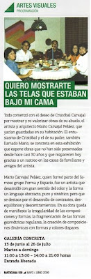 me gusto mucho tu comentario sobre la exposicion de tu tio Mario podrias aportar con ello , pues creo, hace falta mas lindos recuerdos,tambien estoy totalmente de acuerdo con la idea tuya sobre el dia de la danza,pues no se aprecia el trabajo tanto creativo como tecnico, aparece solo como una improvisacion , vale decir una humorada como parada de luz roja. chao hasta la vista ,Elisa Maria.